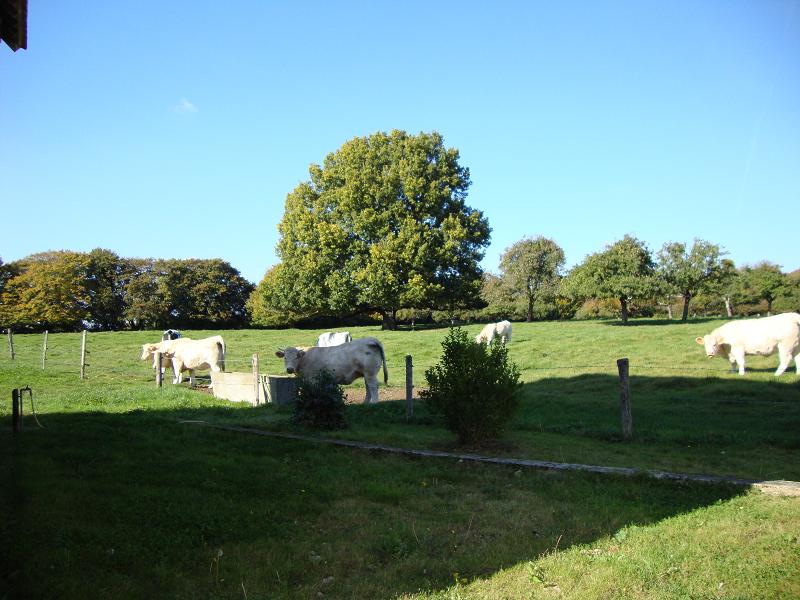 Le terrain s'étend sur 2400 m2 environ au delà de la clôture Les vaches ne font pas partie du deal , dommage car elles sont mignonnes tout plein!!!
