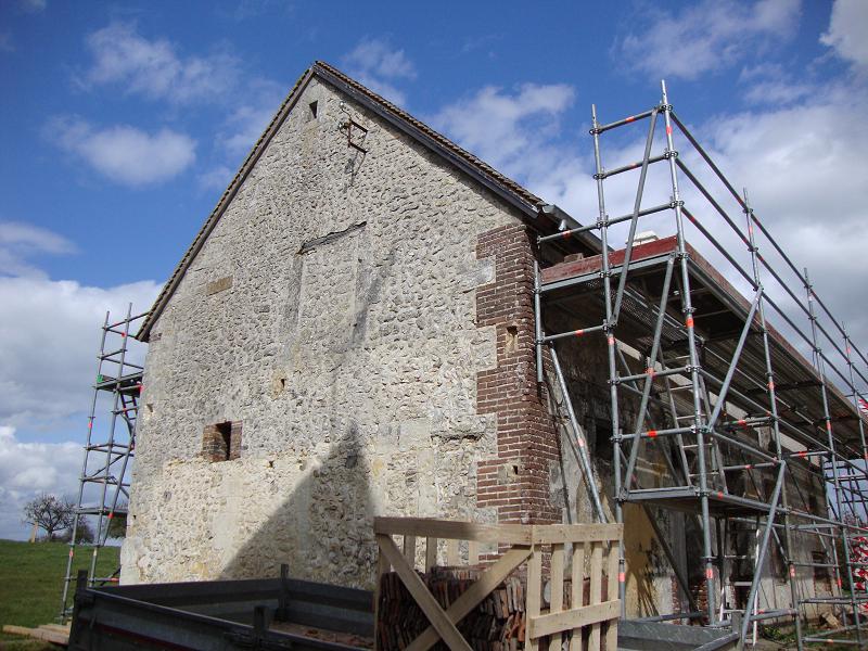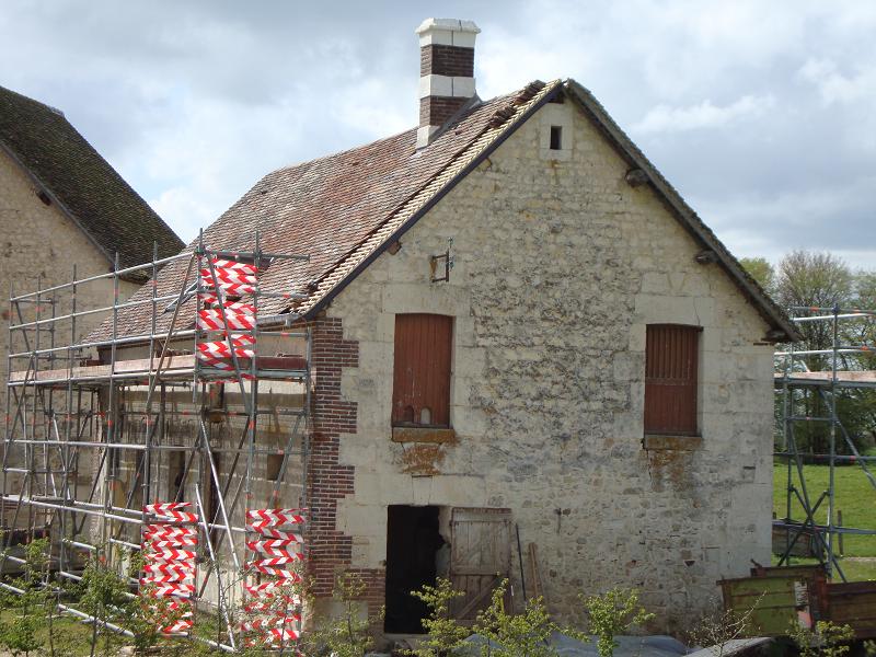 la cheminée est restaurée, les pierres très abîmées ont été restaurées avec un lait de chaux