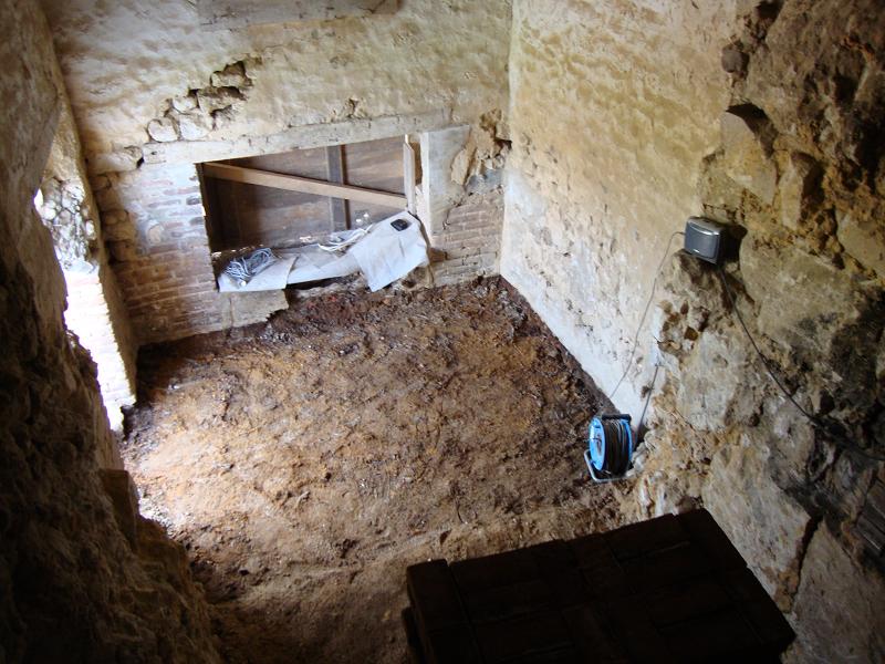 démontage du sol en briques