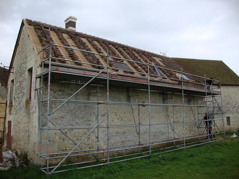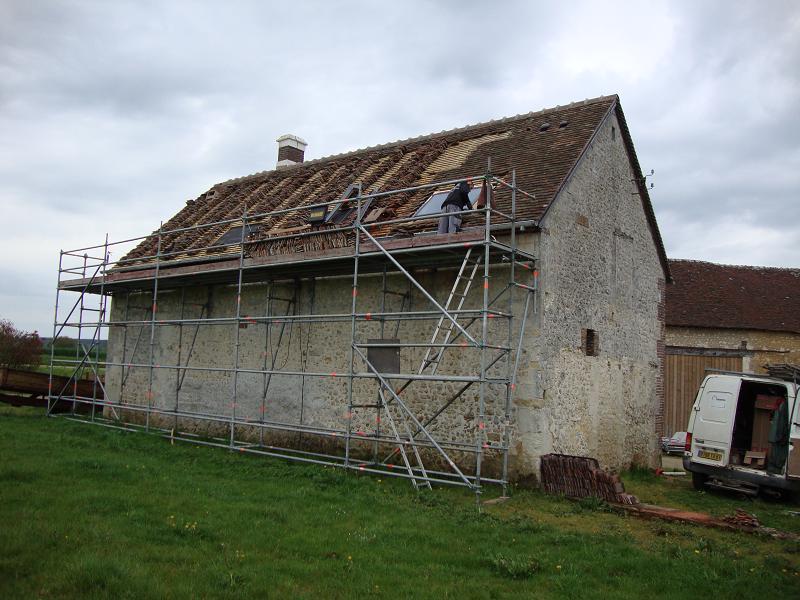 4 mai 2012 La façade coté jardin, avance bien, avec la pose du premier velux.