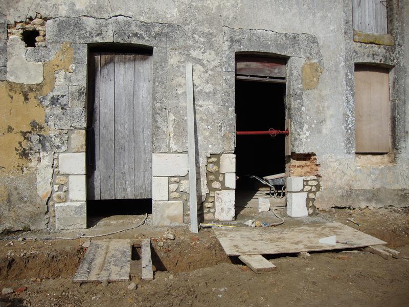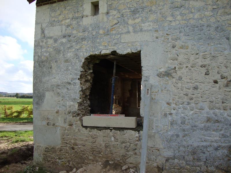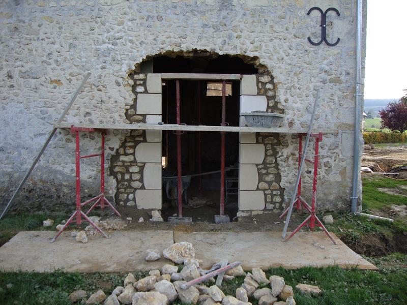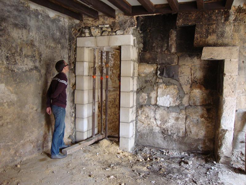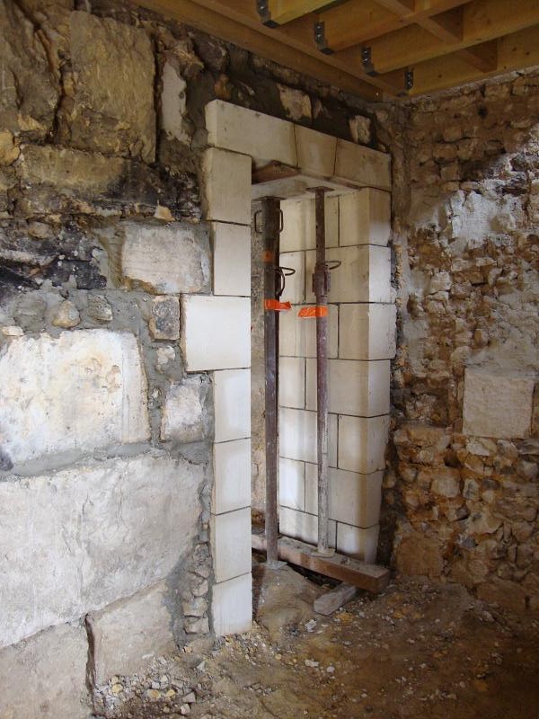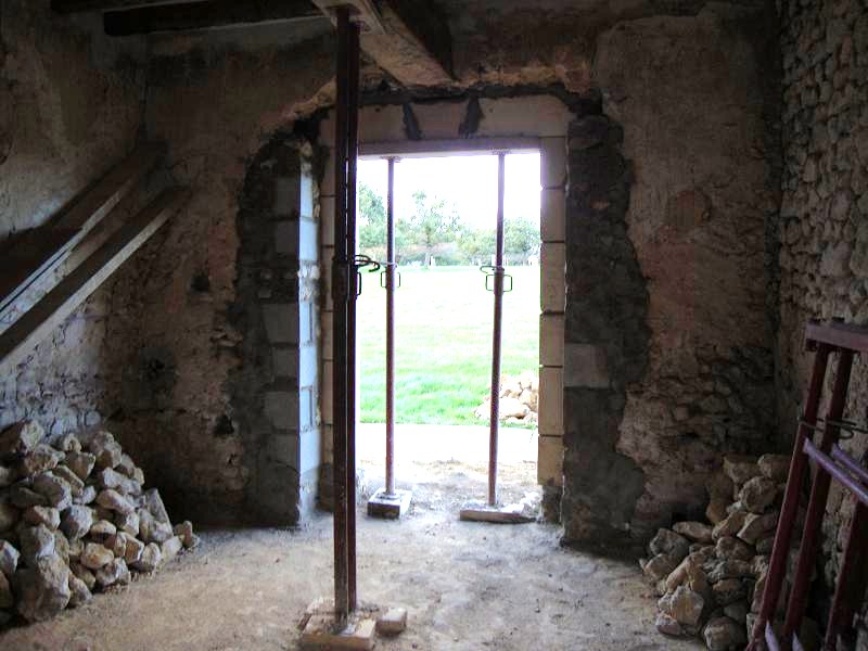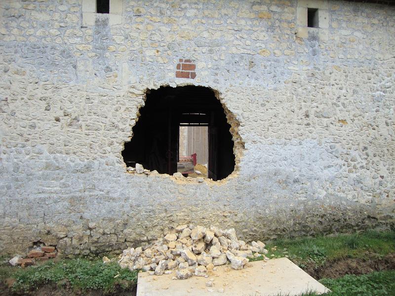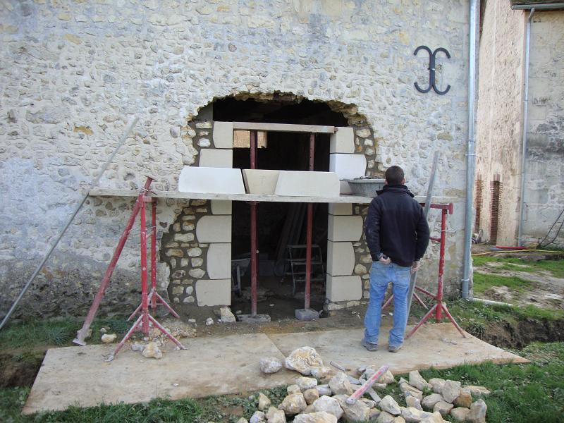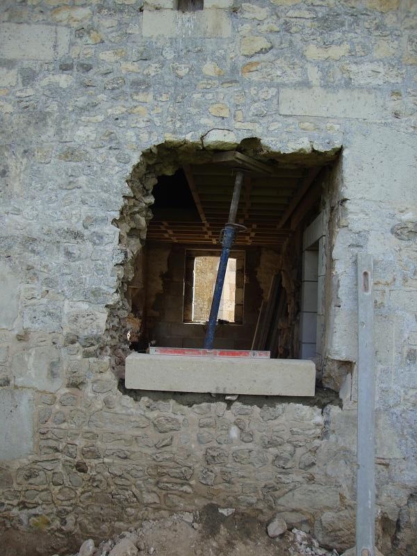 ...31 octobre 2012, création de la porte fenêtre en pierres de taille ... Sur la droite on peut apercevoir un X de consolidation. Il y en aura trois sur la façade.