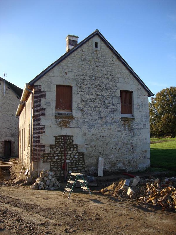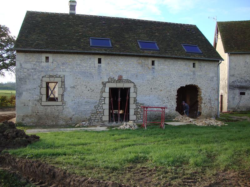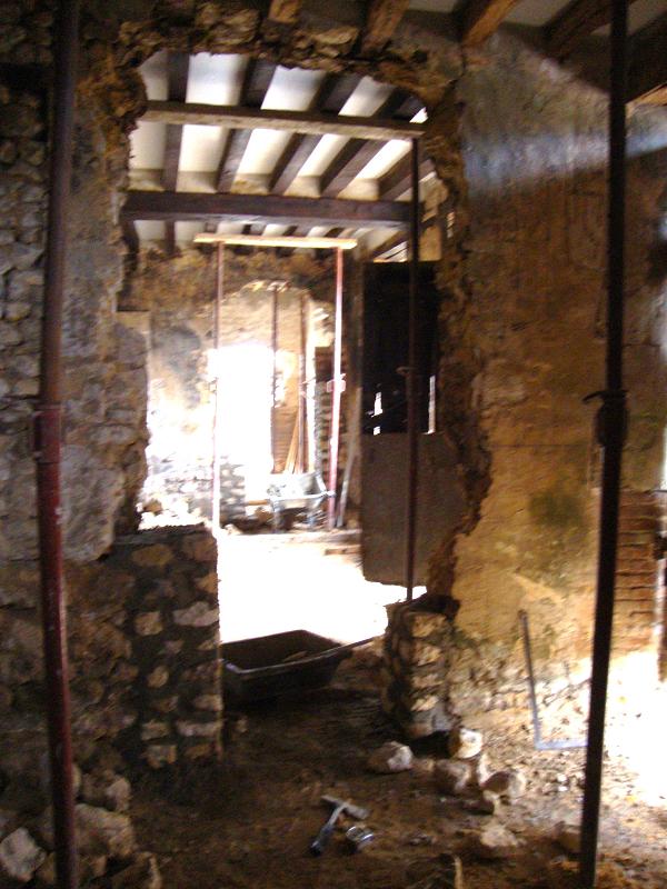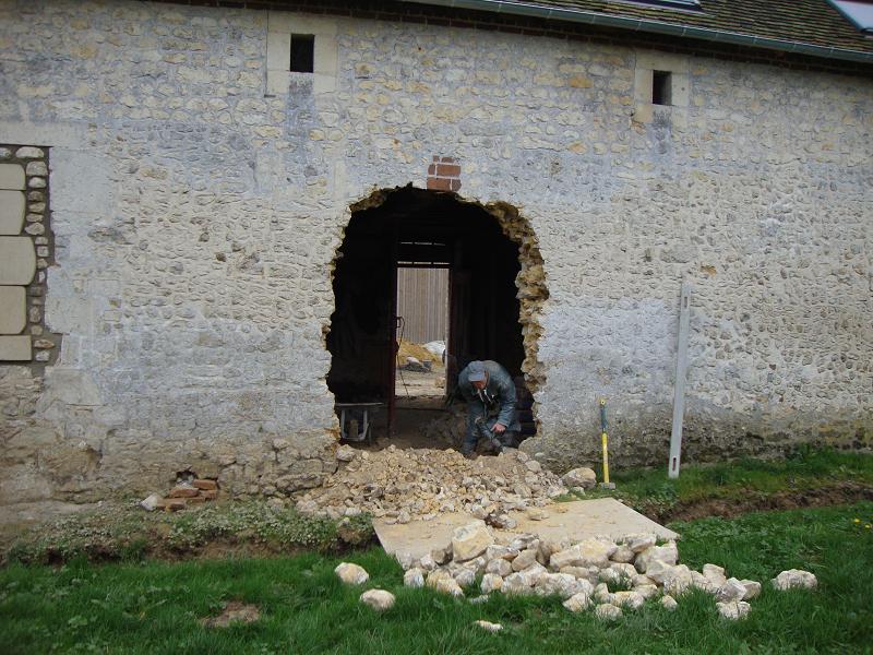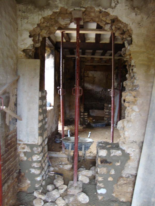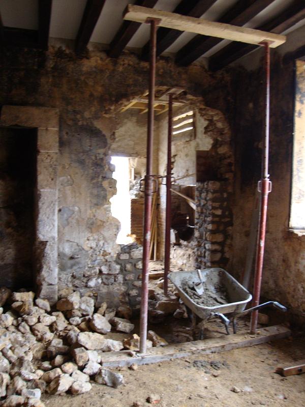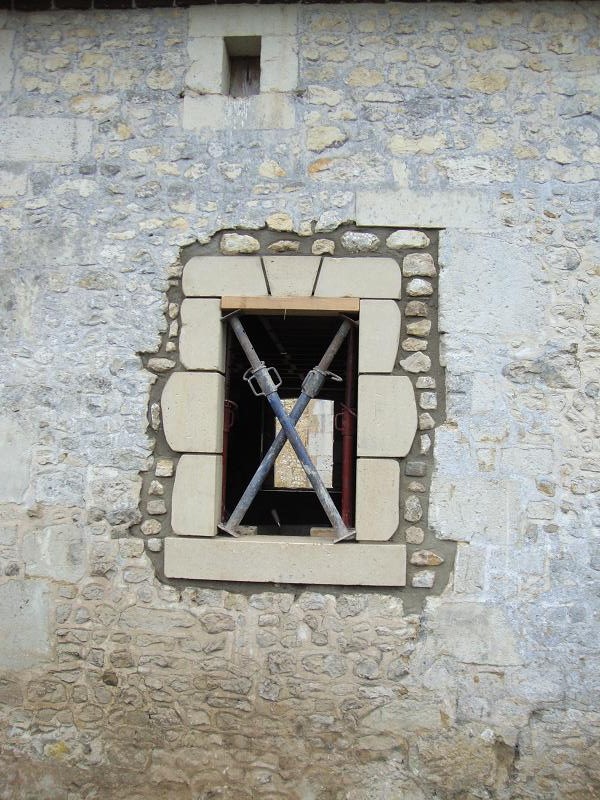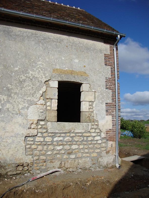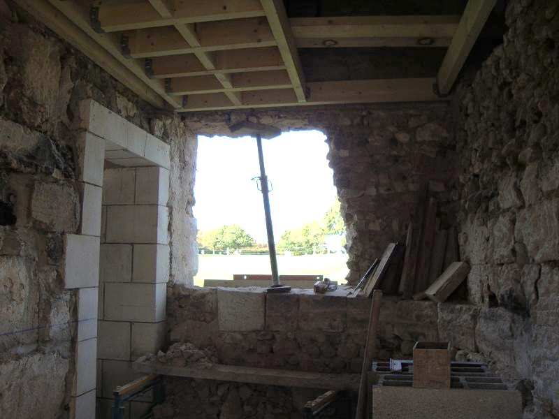 ...31 octobre 2012, création de la porte fenêtre en pierres de taille ... Sur la droite on peut apercevoir un X de consolidation. Il y en aura trois sur la façade.