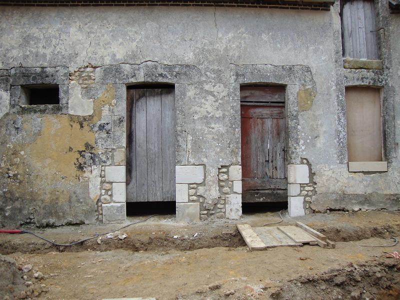 ... alignement de la maçonnerie dans le bas du mur de façade et réalisation des seuils des 2 portes fenêtres ...