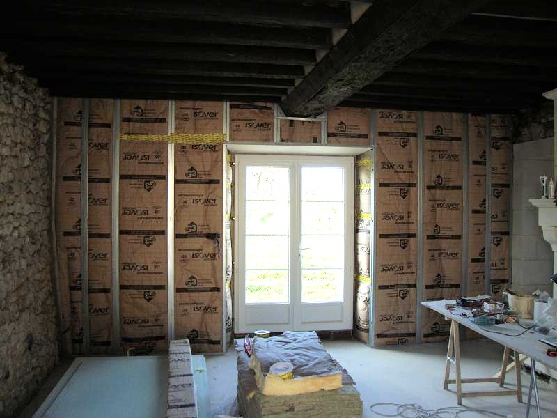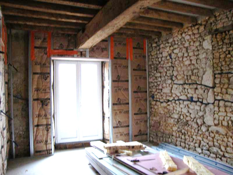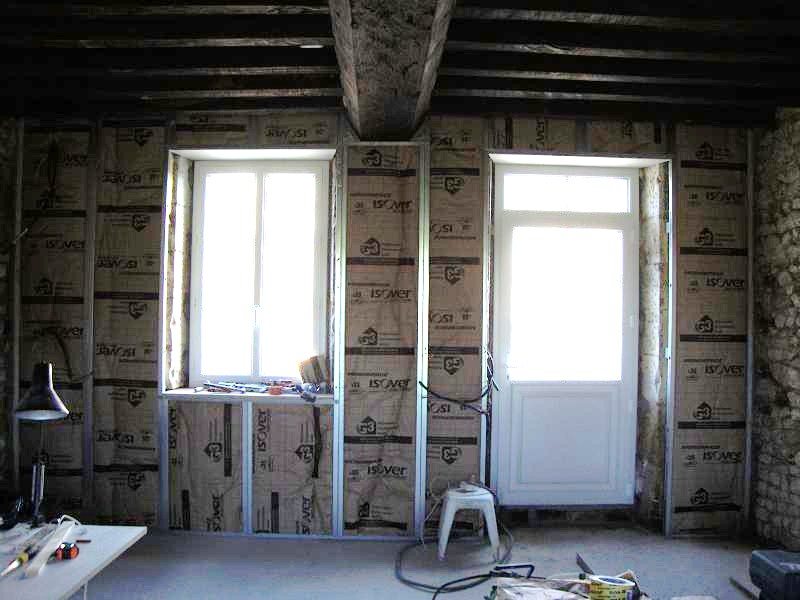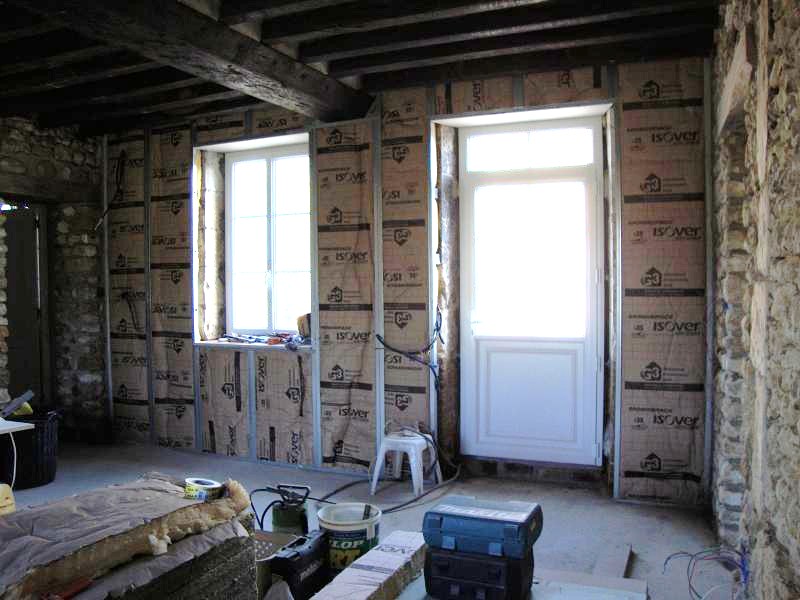 15 avril 2013 Isolation du séjour avant pose du placo les murs intérieurs de droite et de gauche seront crépis selon la technique dite à pierres vues
