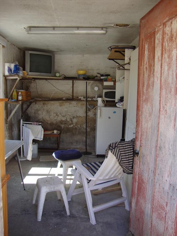 Pour l'instant c'est "la cabane de chantier" où les travailleurs peuvent se reposer, déjeuner et se chauffer