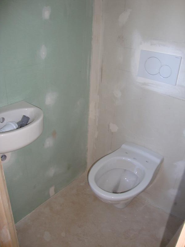 Sanitaire Les équipements des WC sont posés mais pas encore raccordés, le plombier n'est pas un rapide ...
