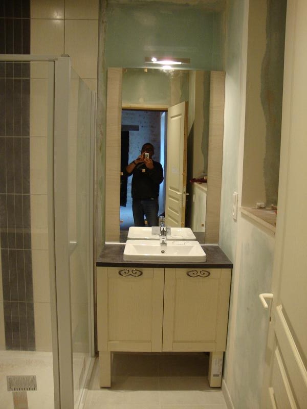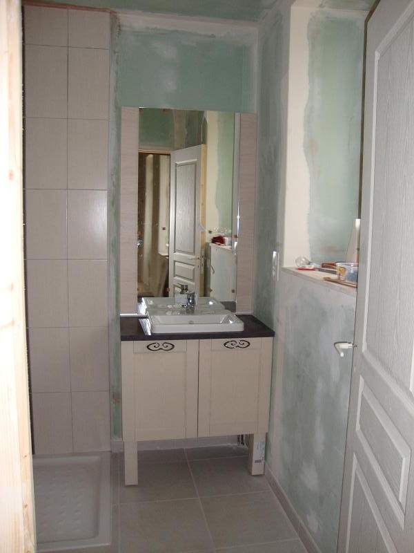 ... de la cabine de douche, mais il reste encore le pommeau de douche à installer, il faut être très très patient avec notre plombier et surtout, ne pas avoir besoin de prendre de douches