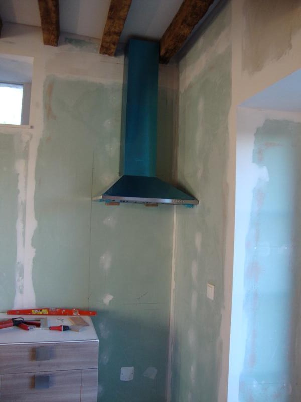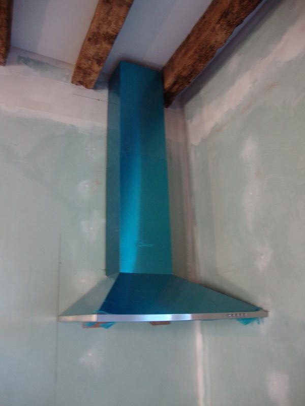 .... il faut installer la gaine d'évacuation, vers le toit qui sera posée prochainement