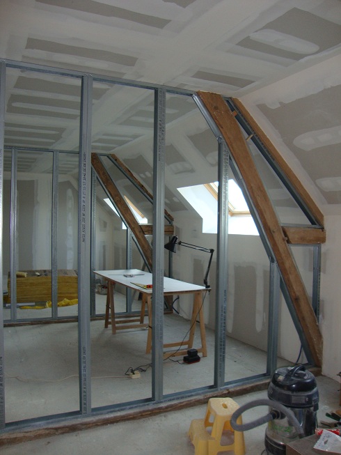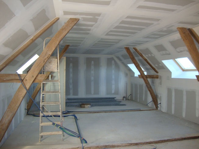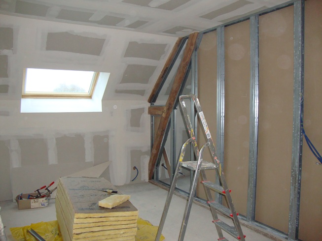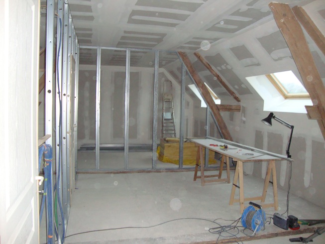 La pose du placo, presque terminée