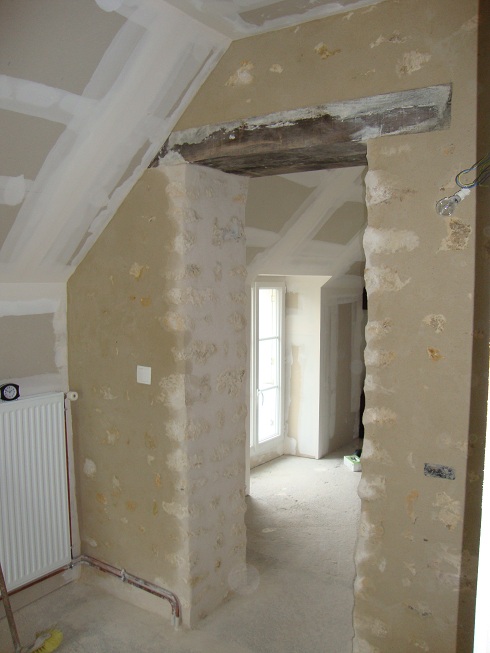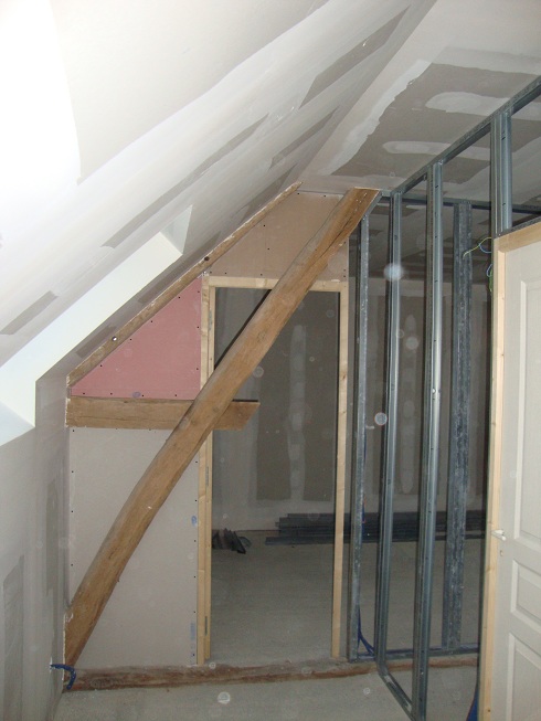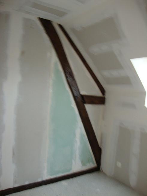 ... Réalisation très complexe de l'entourage de la porte de la grande chambre, à cause de la charpente qui est derrière Mais on y est arrivé !!!