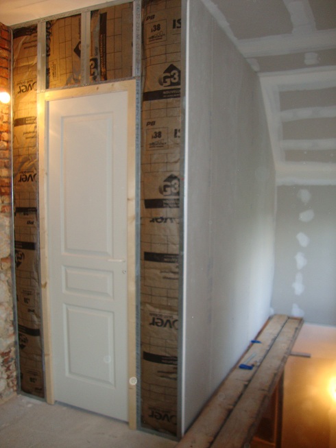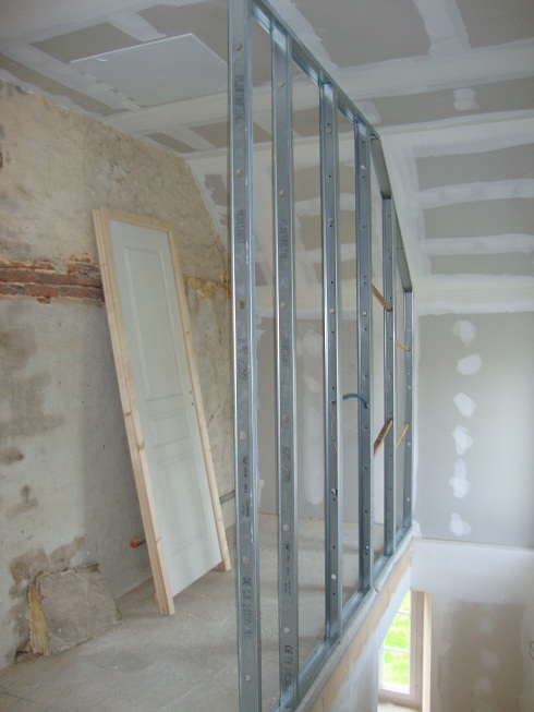 ... Début du montage de la cloison des futurs WC ...