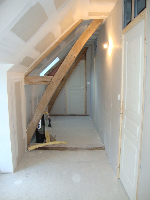 ... On devine bien les 3 prochaines chambres. Les 2 poutres au sol, les délimitent bien !