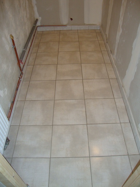 Pose du carrelage des futurs WC du 1er étage ...