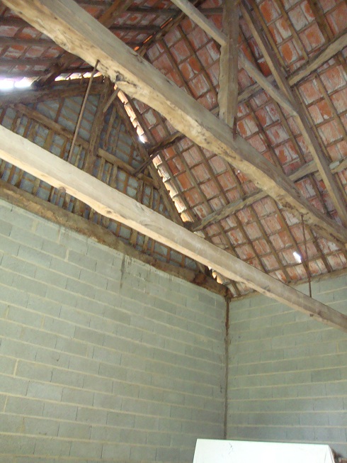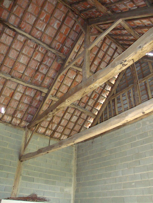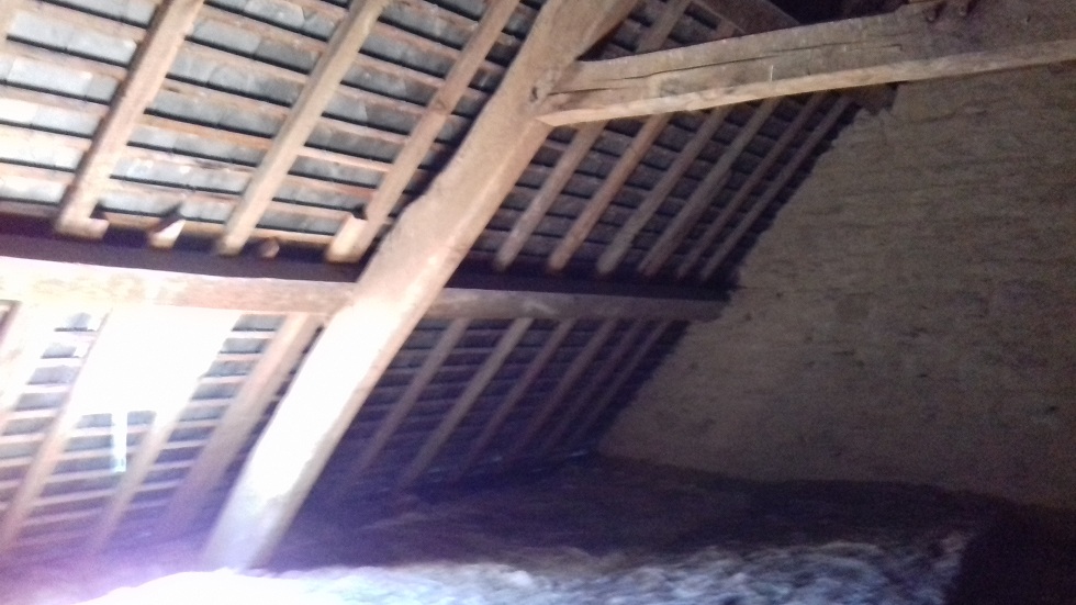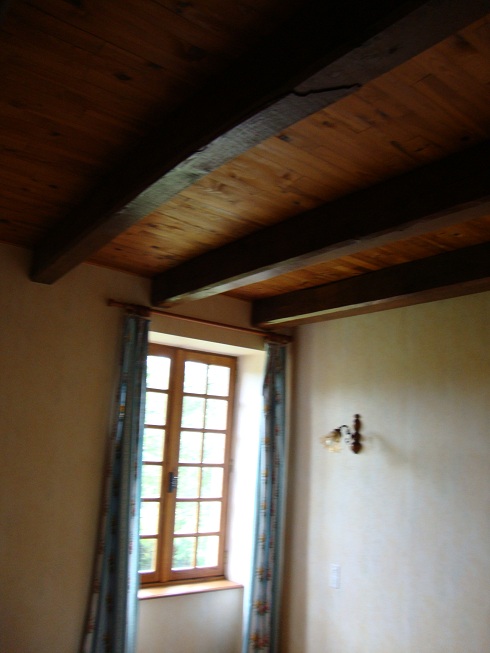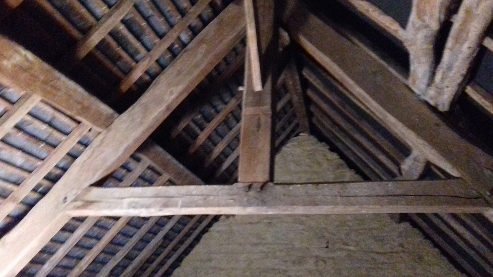 A gauche de la charpente, la chambre