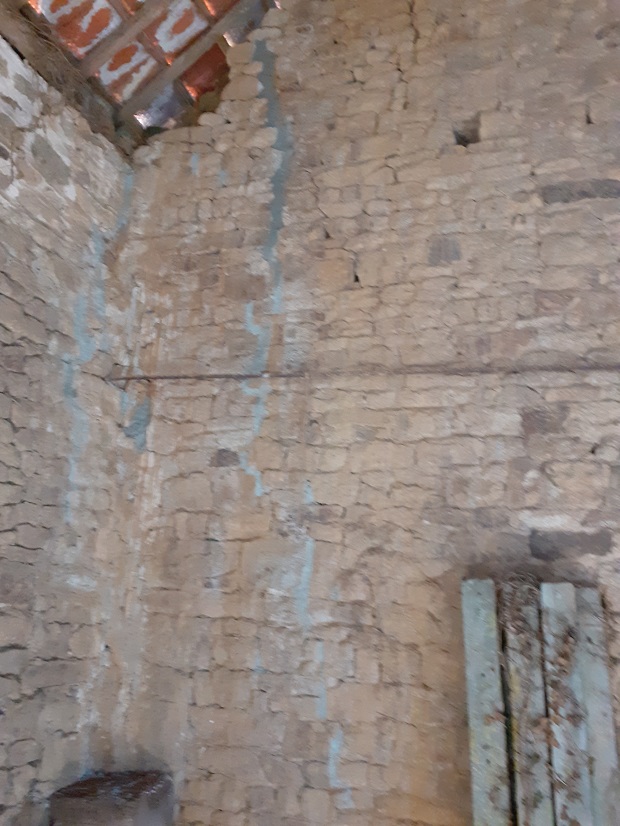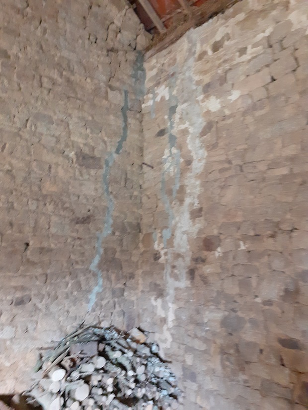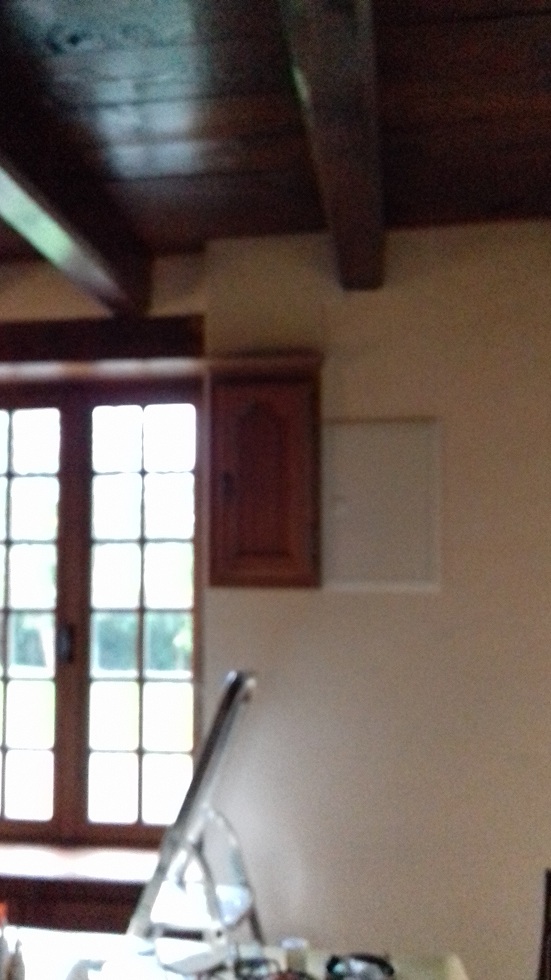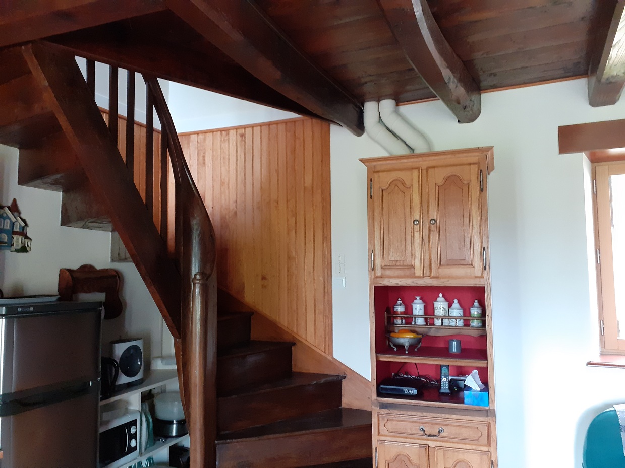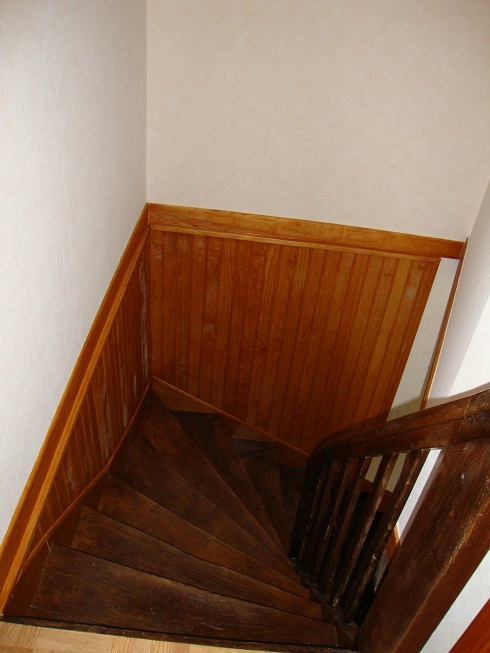 L'escalier d'accès et la trappe de visite du grenier restant.