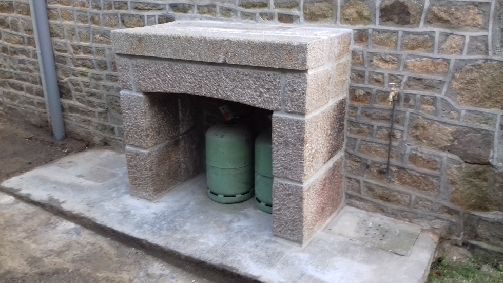 La petite cheminée a été remontée derrière la maison et sert d'abri aux 2 bouteilles de gaz