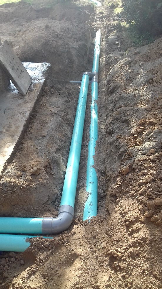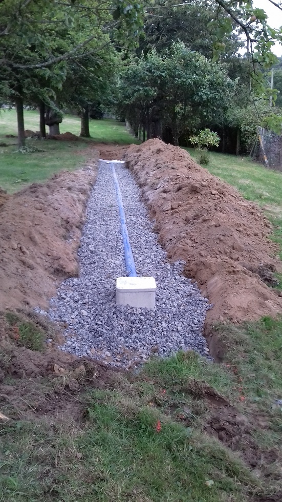 Installation du drain d'épandage des eaux filtrées