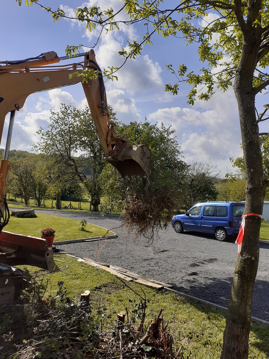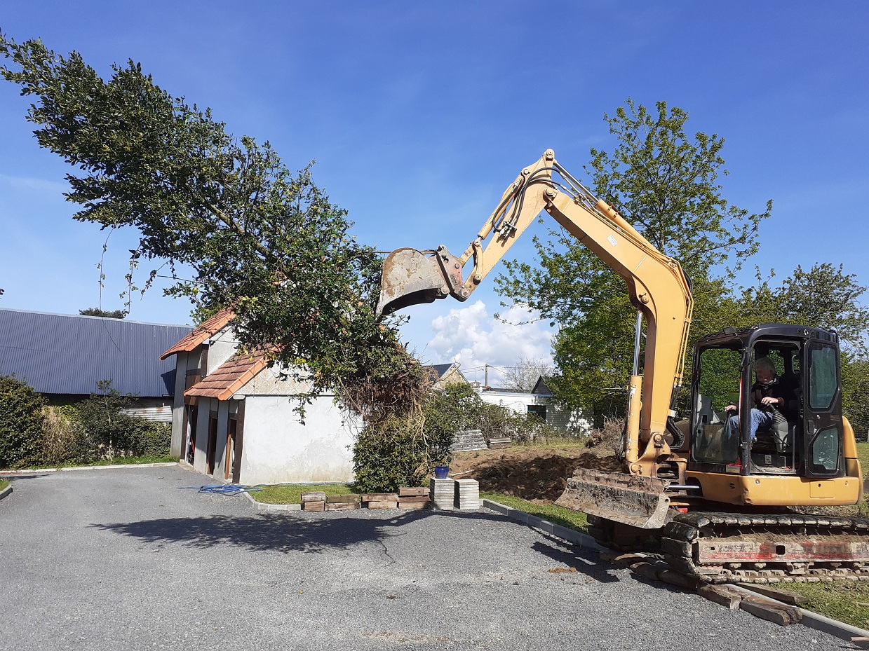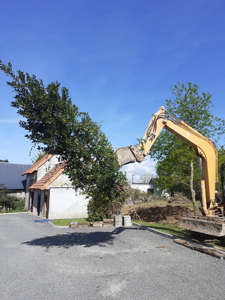 Travaux de terrassement pour retirer les souches de la haie