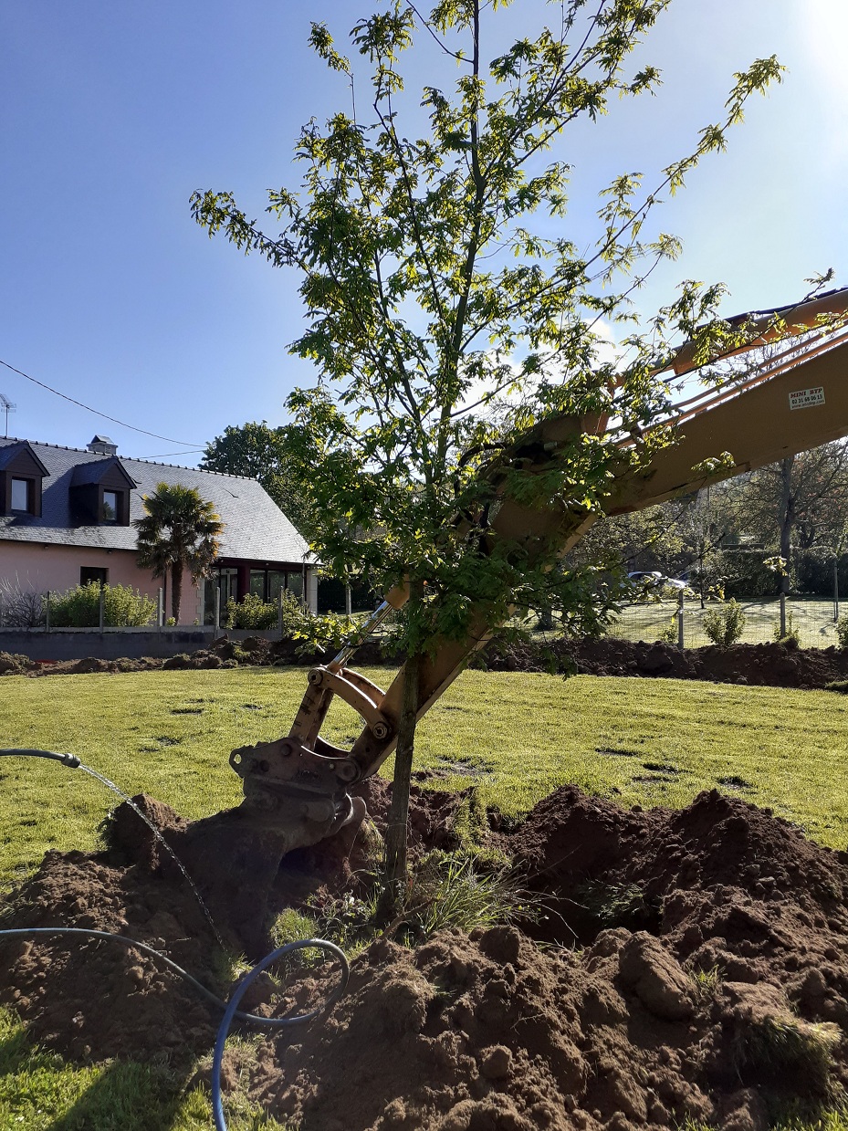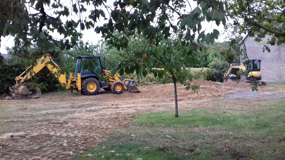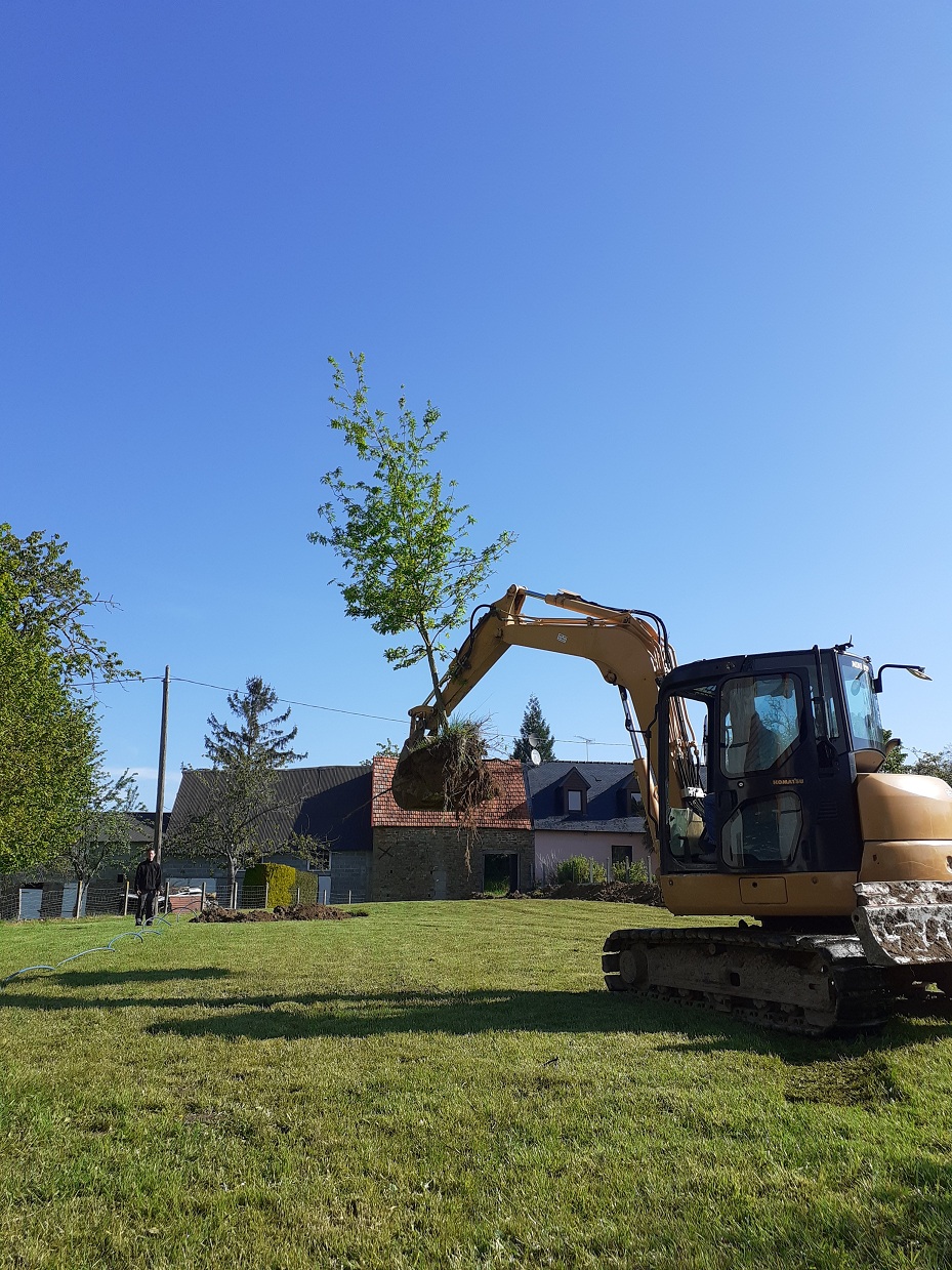 Travaux de terrassement pour retirer les souches de la haie
