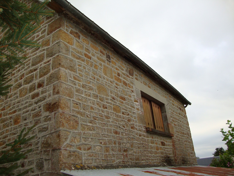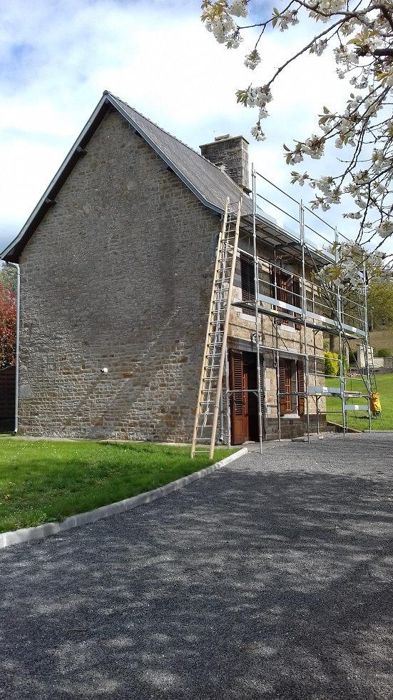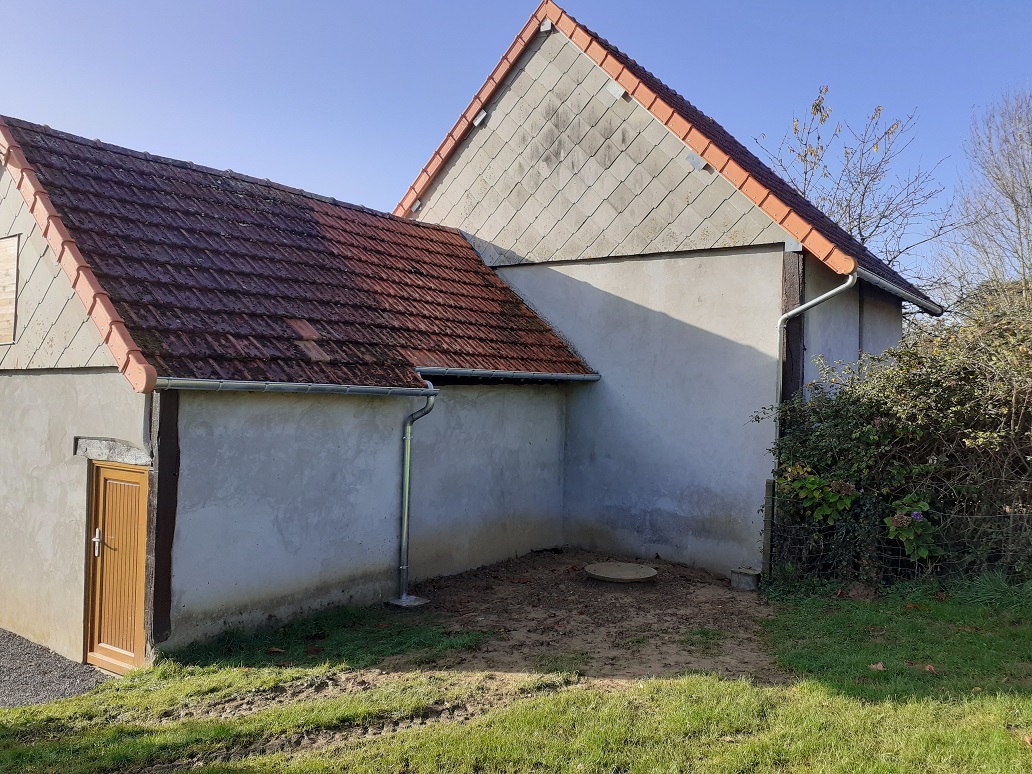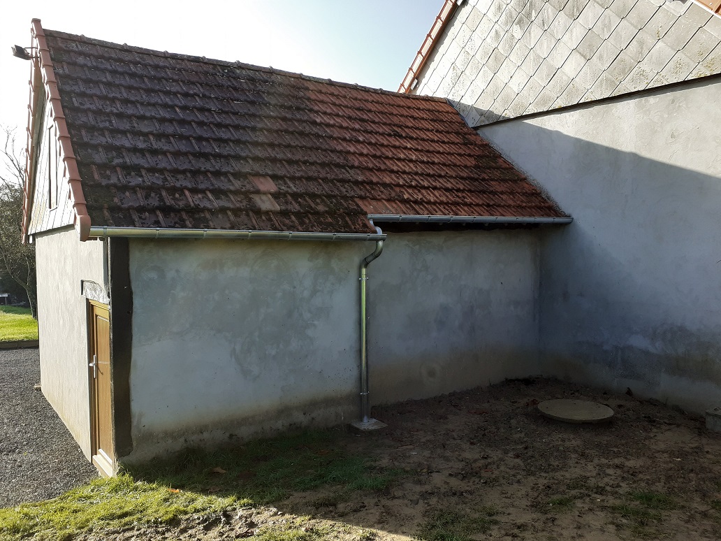 Pose d'une gouttière sur la grange, coté jardin...