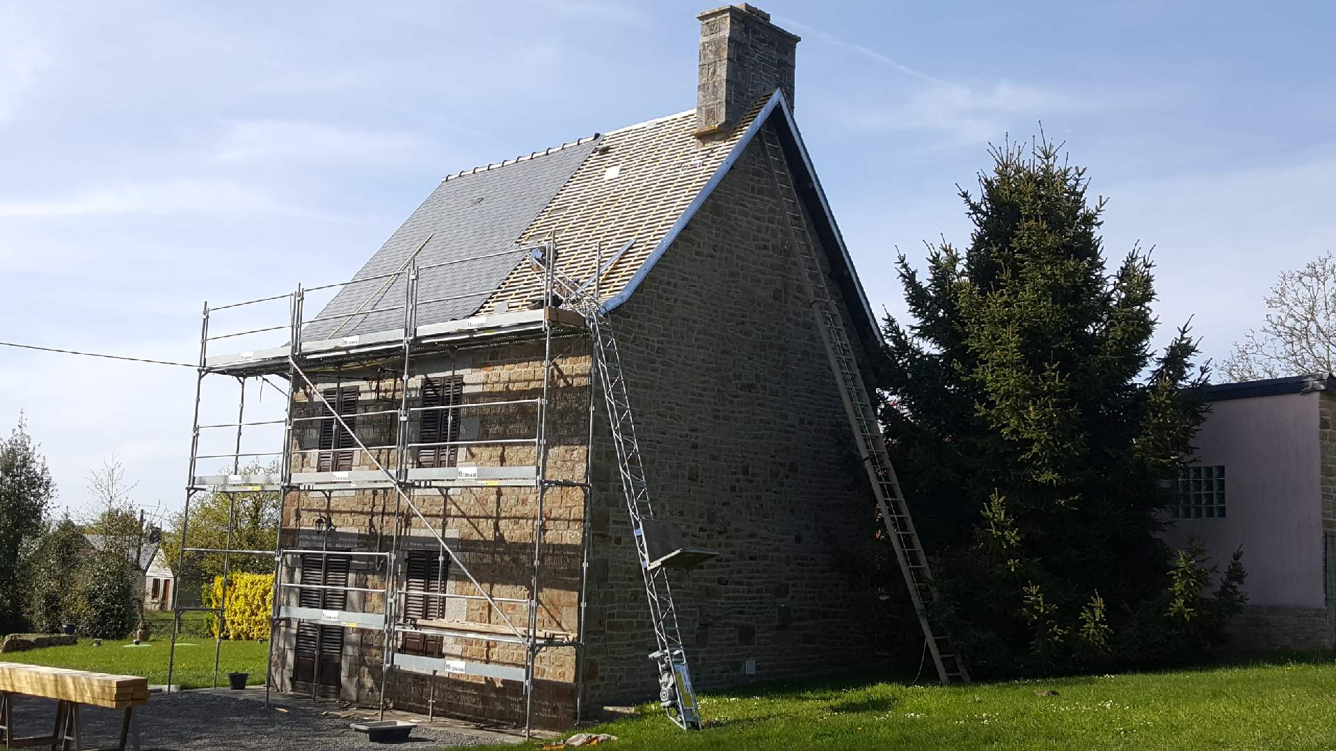Restauration de la couverture à l'arrière de la maison L'ardoise était de très mauvaise qualité