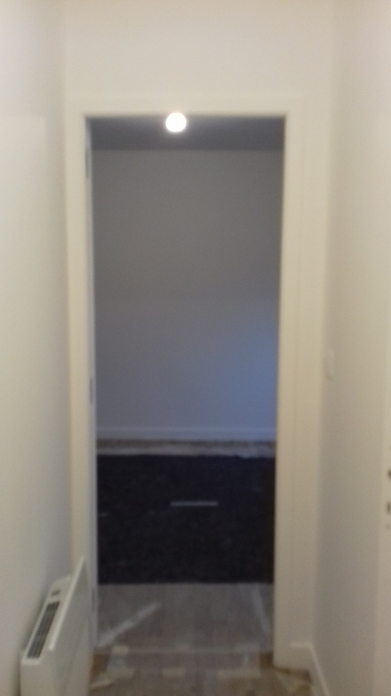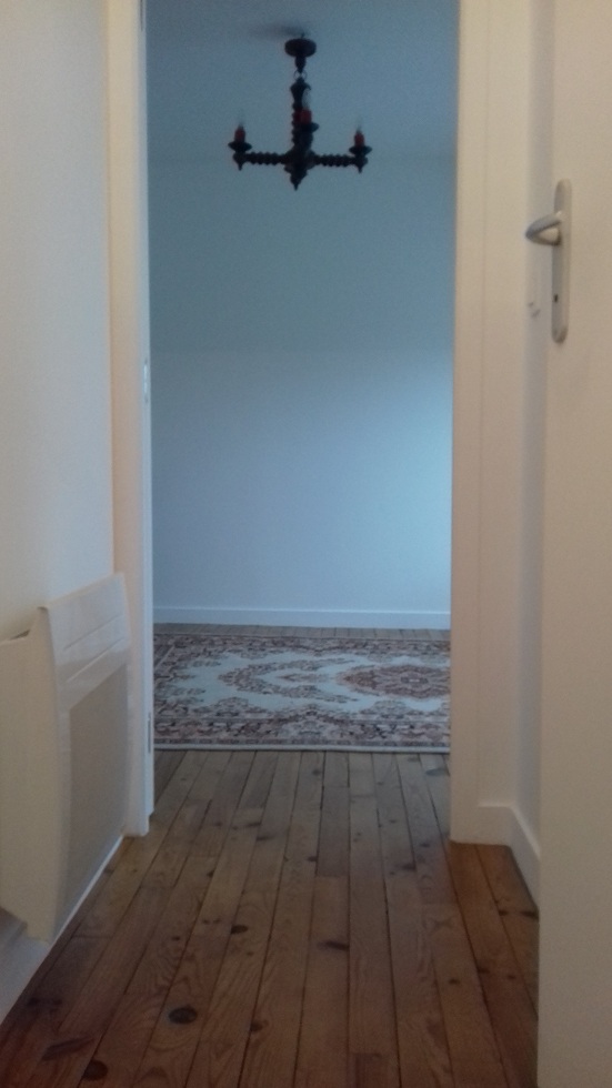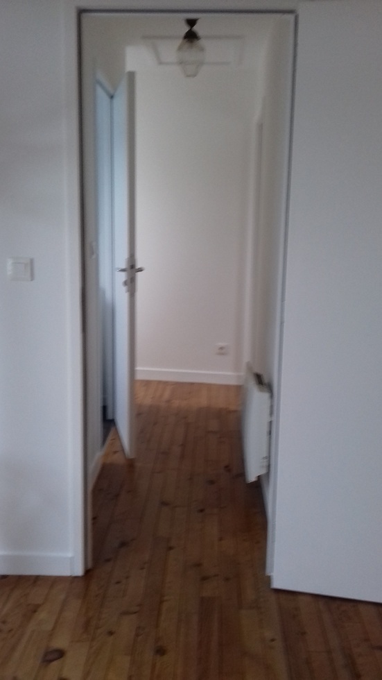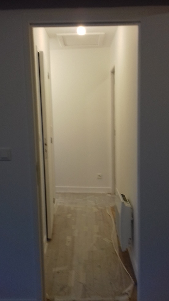 Les travaux sont achevés, luminaires posés et parquet vitrifié, reste à meubler. Le couloir