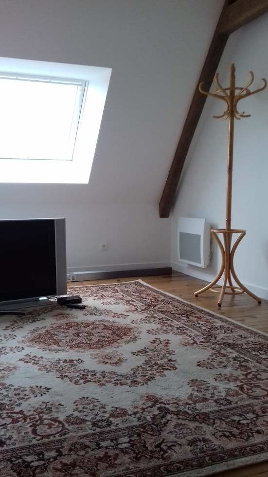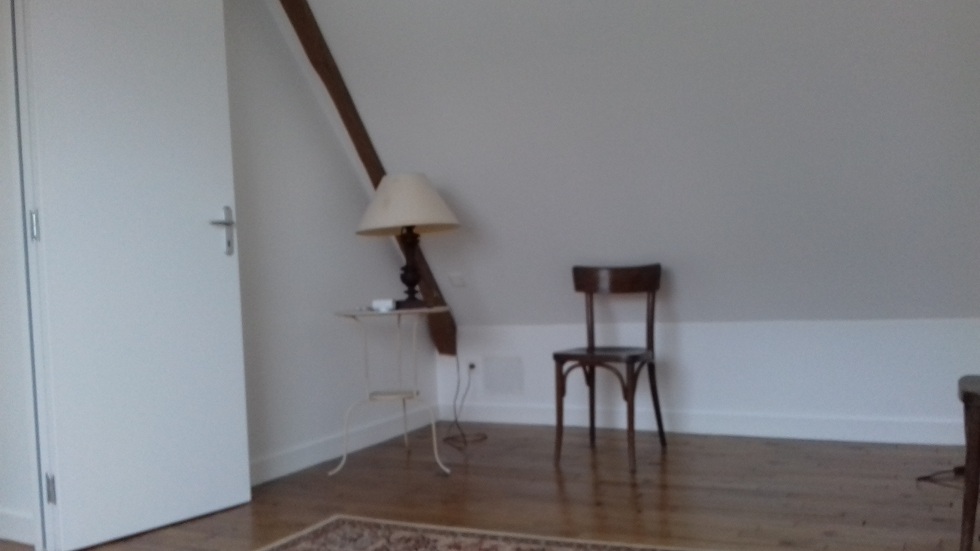La grande chambre avec une partie de la charpente apparente