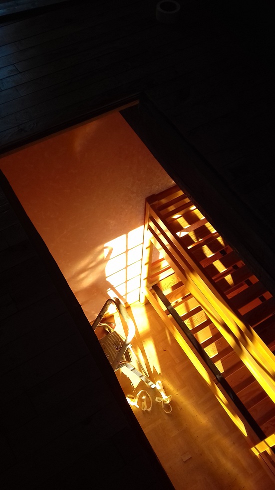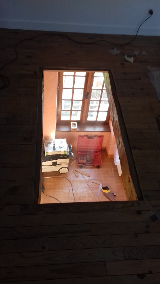 Pose de l'escalier qui desservira le grenier et ...