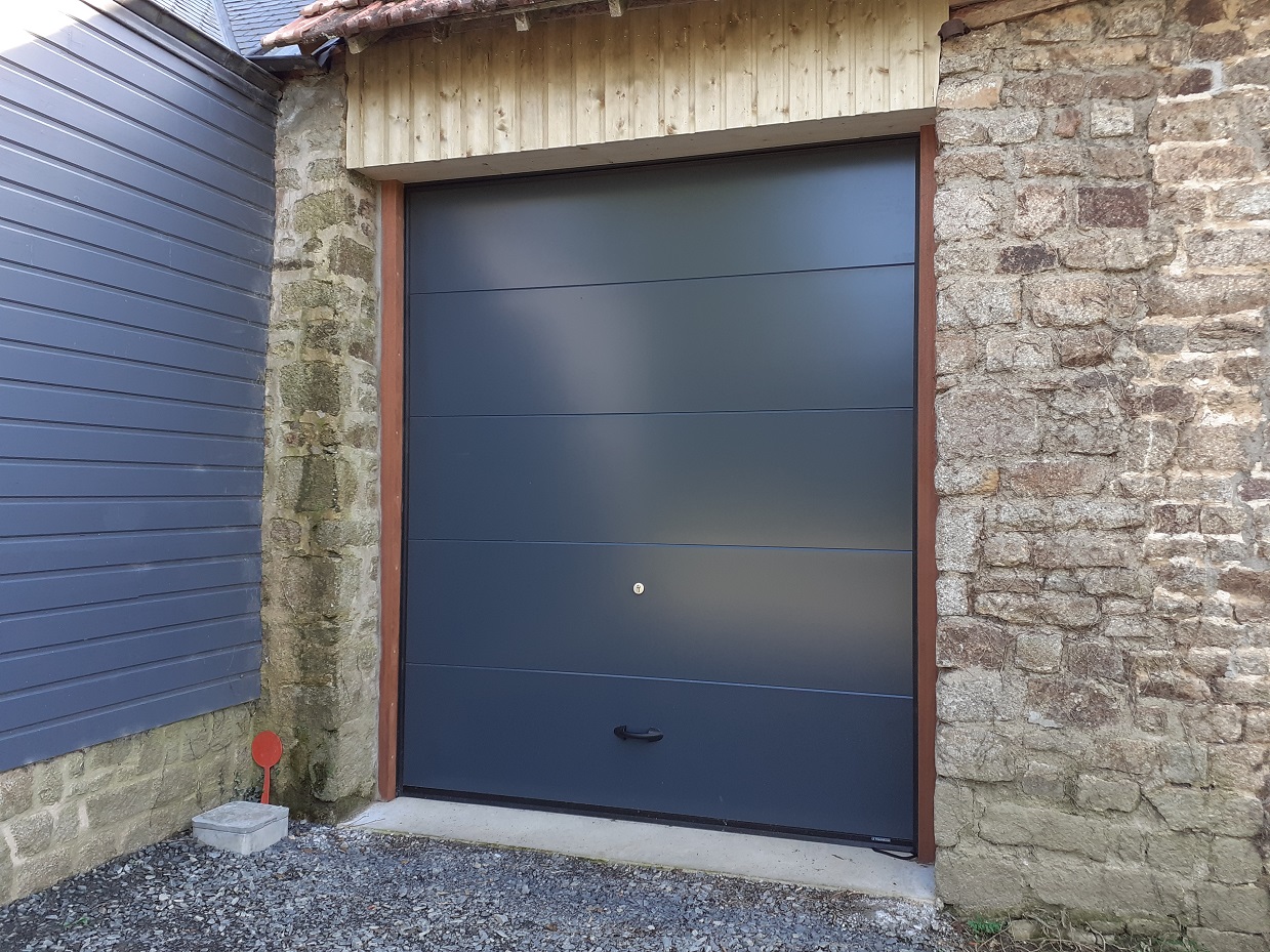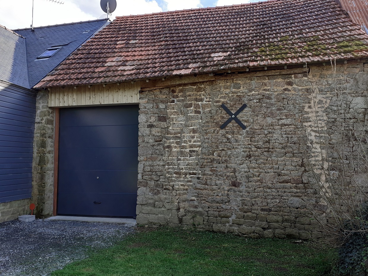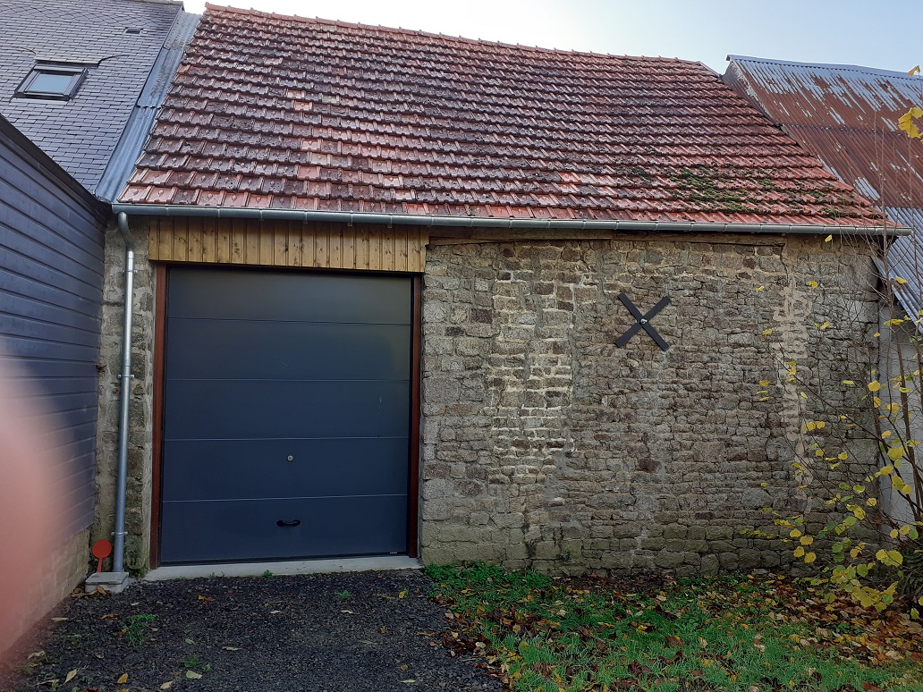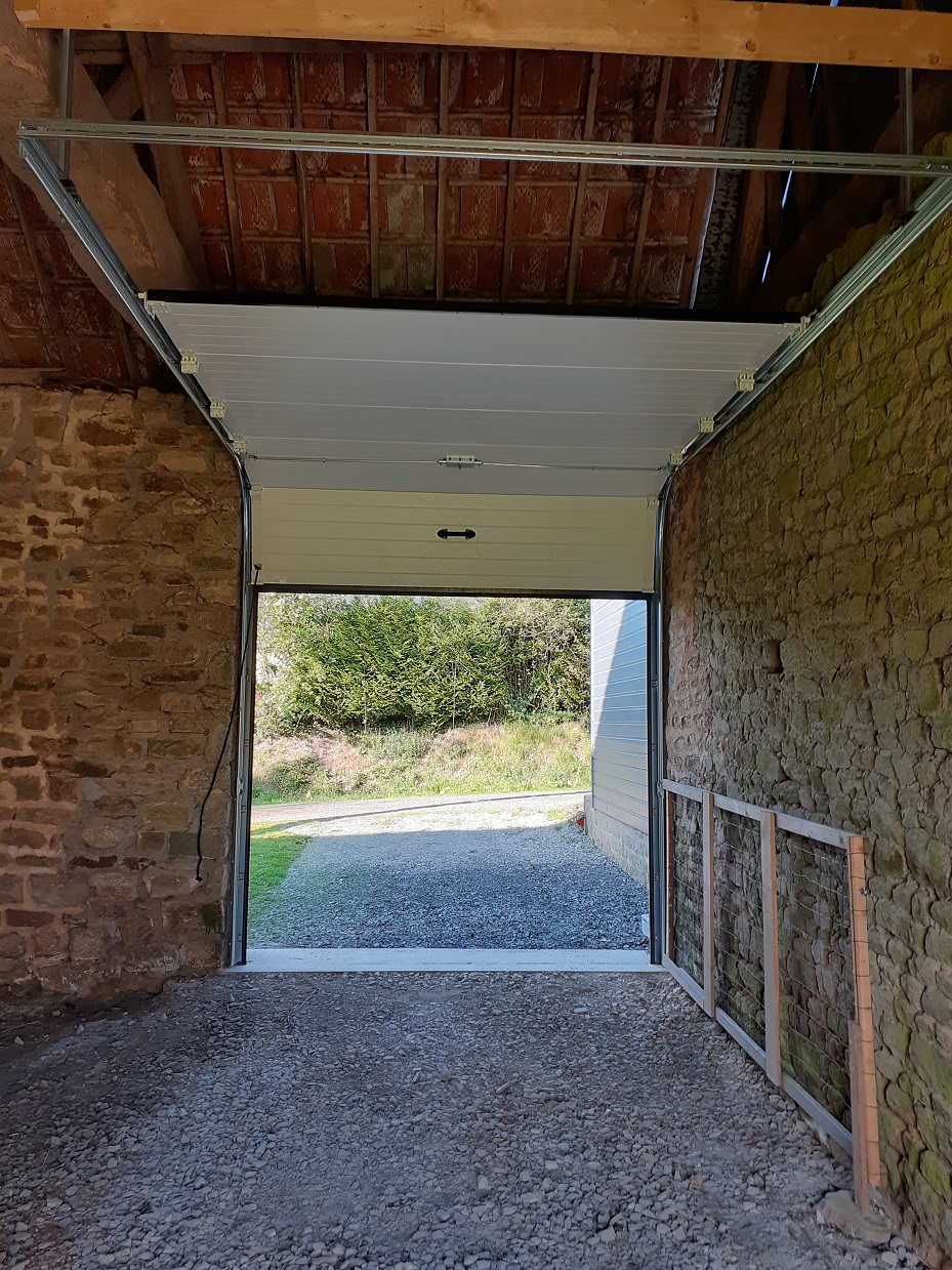 Installation d'une porte de garage basculante coté chemin