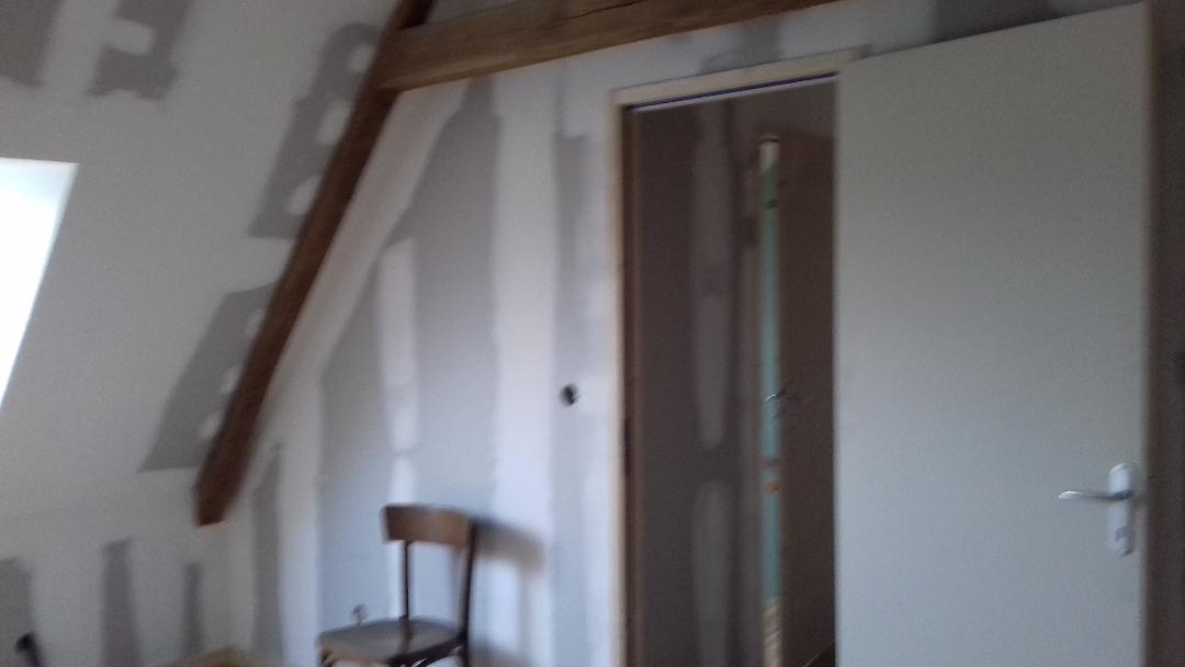 Aménagement du 2ème étage (le grenier) les cloisons sont faites, restent à terminer la pose des sanitaires dans la salle d'eau et l'installation des prises de courants et l'éclairage et les radiateurs