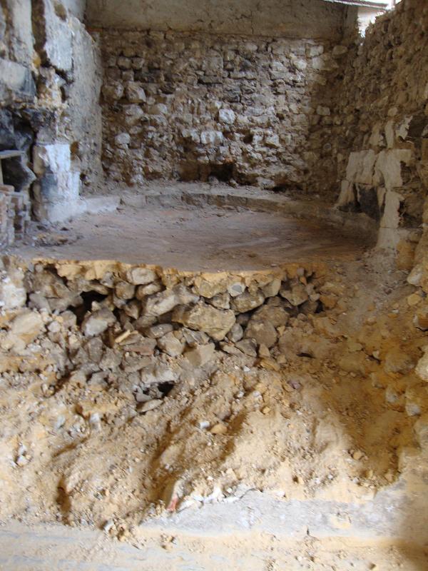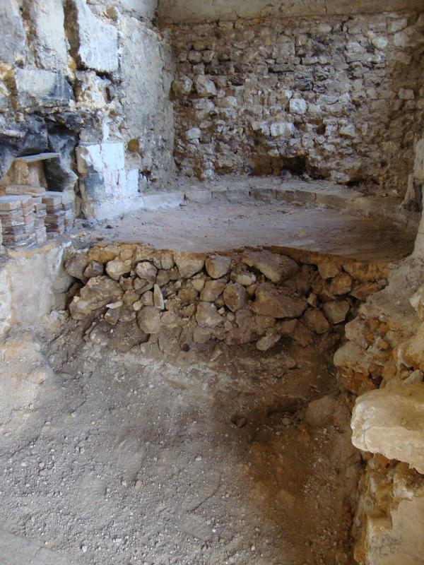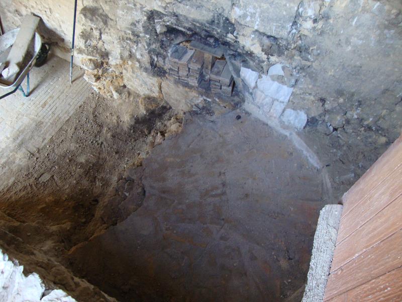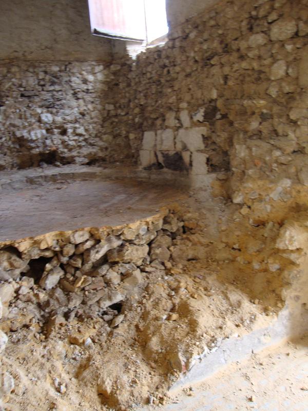 L'après midi, début du démontage de la base de l'âtre qui est composée de pierres disposées sans mortier,